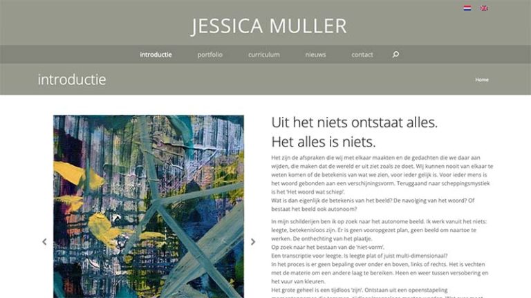 Beeldend kunstenaar Jessica Muller maakt schilderijen, tekeningen. Op zoek naar het bestaan van de ‘niet-vorm’, zoals zij het mooi verwoordt.
